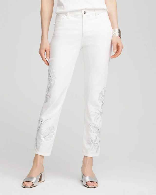 Girlfriend Embellished Cropped Jeans