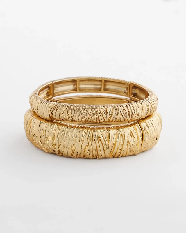 Crinkle Gold-Tone Stretch Bangle Set
