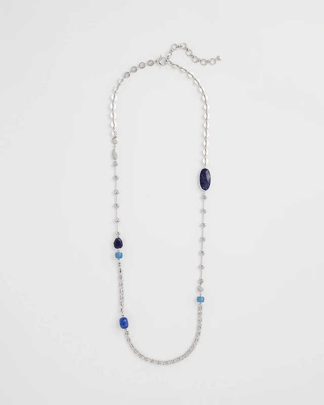 Adjustable Blue-Neutral Wood Pendant Necklace