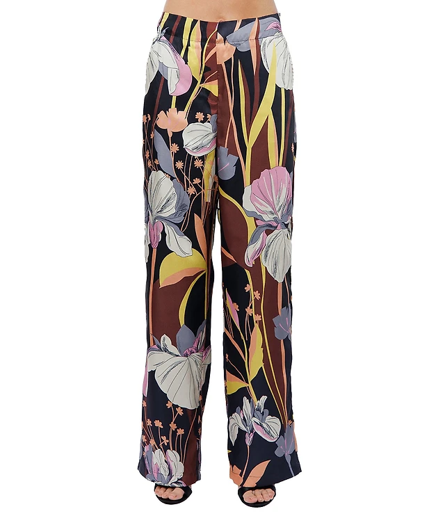 CIEBON Seleste Printed Woven High Waist Wide Leg Belted Coordinating Pants