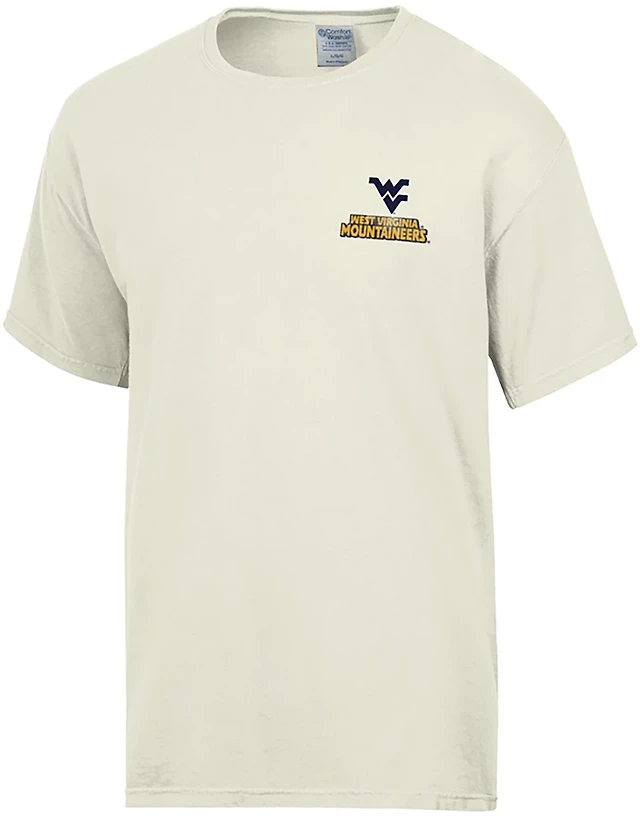 Comfort Wash Men's West Virginia Mountaineers Cream Mascot Phrases Double Sided Short Sleeve T-shirt
