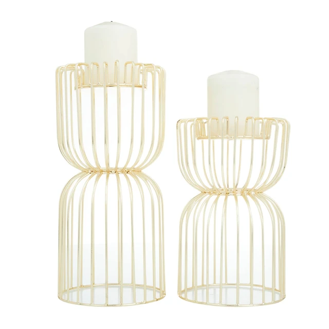 CosmoLiving by Cosmopolitan Gold Iron Glam Candle Holder, 13" x 10"
