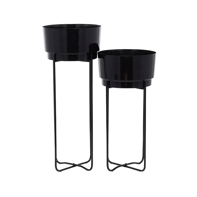 CosmoLiving by Cosmopolitan Set of 2 Black Iron Contemporary Planter, 24" x 10" x 10"