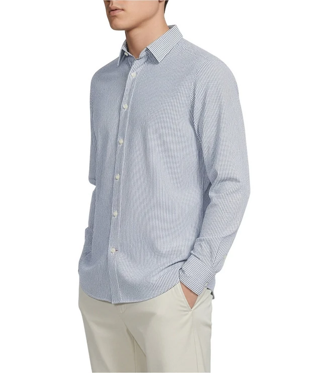 Cremieux Blue Label Performance Stretch Seersucker Stripe Long Sleeve Woven Shirt