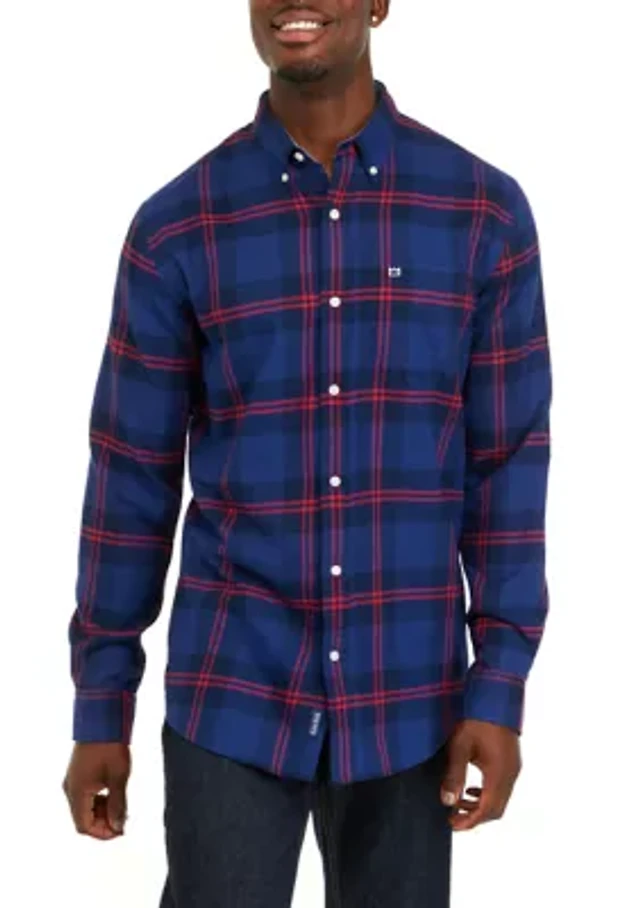 Big & Tall Long Sleeve Woven Poplin Plaid Shirt