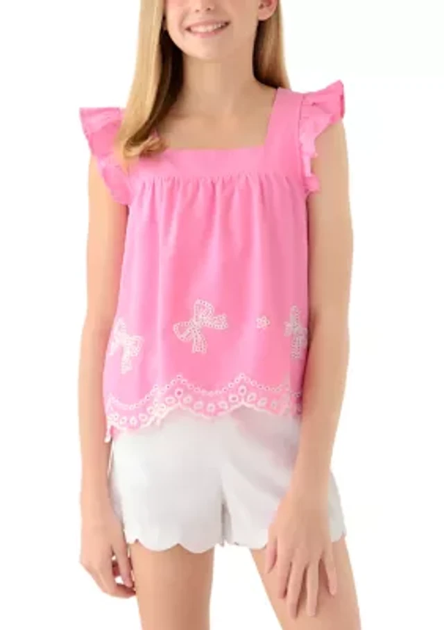 Girls 7-16 Ruffle Embroidered Top
