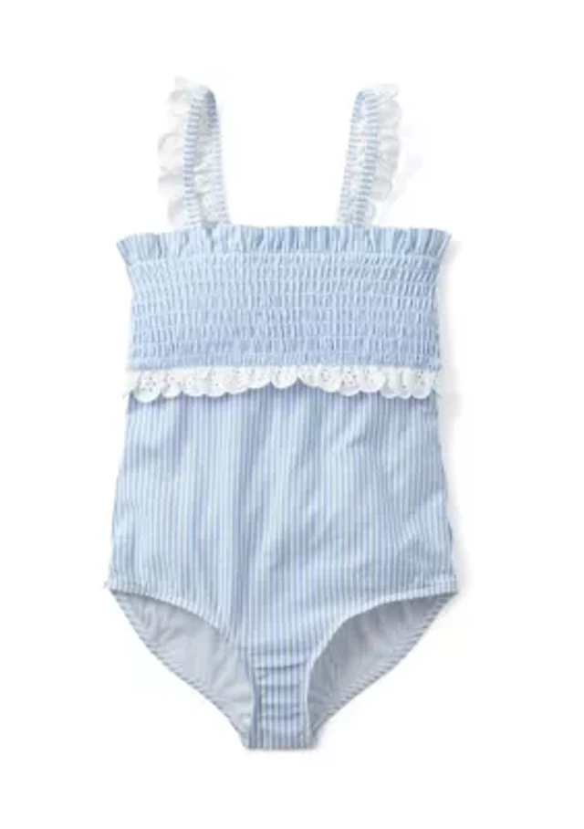 Girls 7-16 Printed Smocked 2-Piece Swimsuit