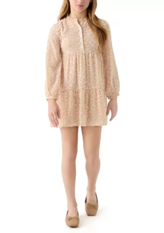 Girls 7-16 Long Sleeve Smocked Dress
