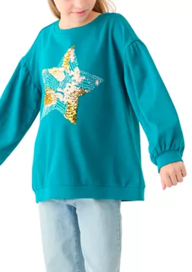 Girls 4-6x French Terry Sequin Star Sweeper Top