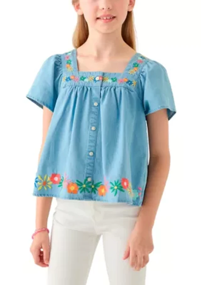 Girls 7-16 Chambray Wrap Ruffle Skort