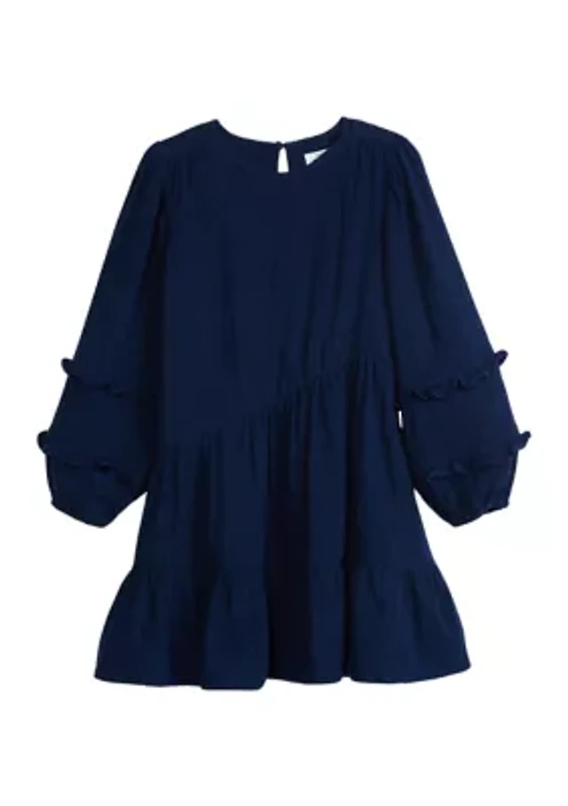 Girls 7-16 Long Sleeve Ruffle Front Dress