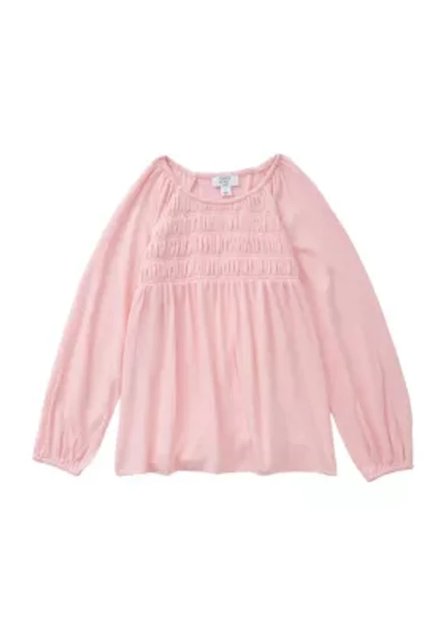 Girls 7-16 Long Sleeve Smocked Ruffle Dress