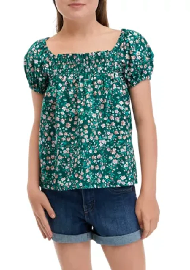 Girls 7-16 Gauze Ruffle Front Floral Dress