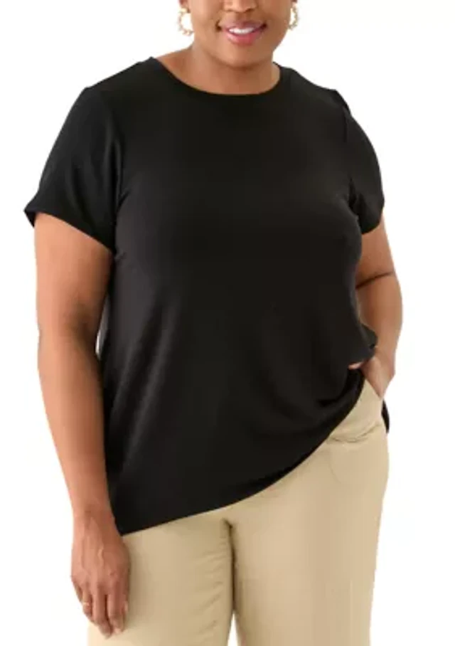 Petite Puff Sleeve Scalloped Top