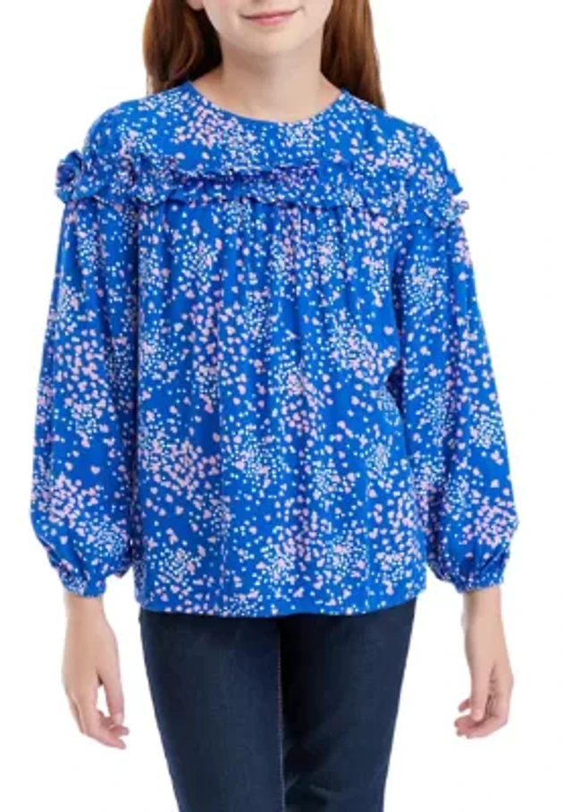Girls 4-6x Long Sleeve Peplum Hem Top