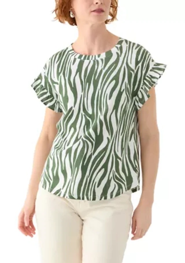 Plus Short Ruffle Sleeve Printed T-Shirt