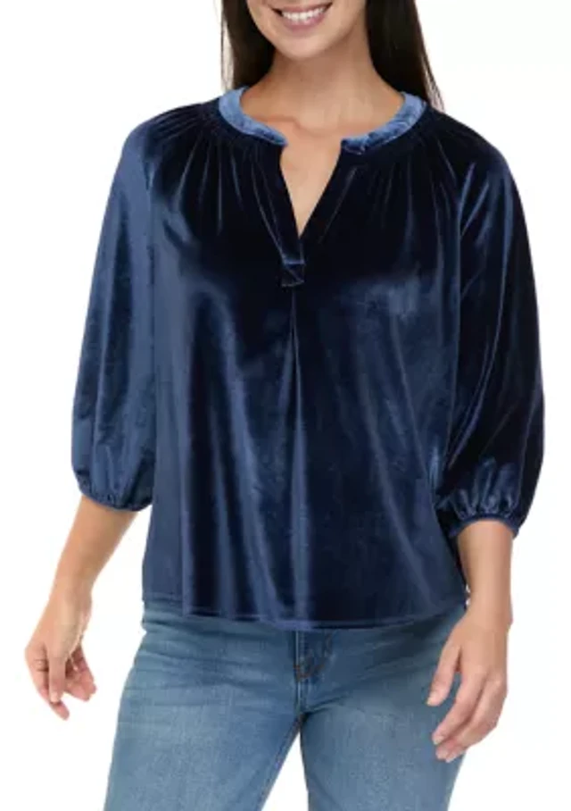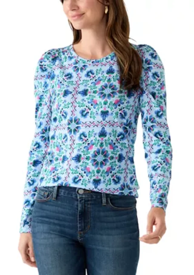 Plus Long Sleeve Pleated Shoulder T-Shirt