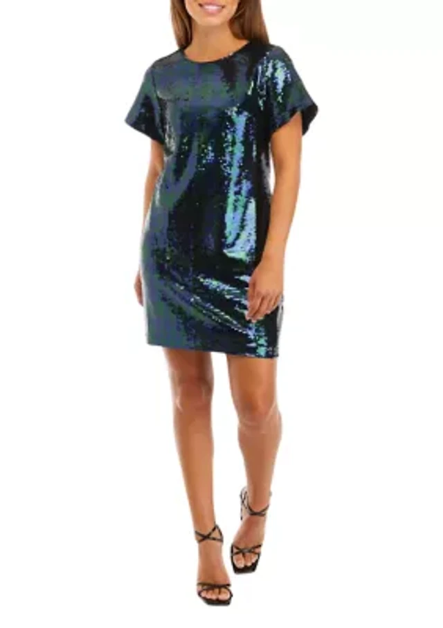 Petite Long Sleeve Crew Tunic Jacquard Sweater