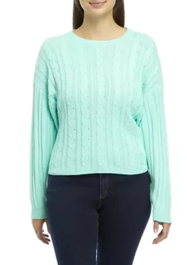 Plus Long Sleeve Jewel Crew Neck Sweater