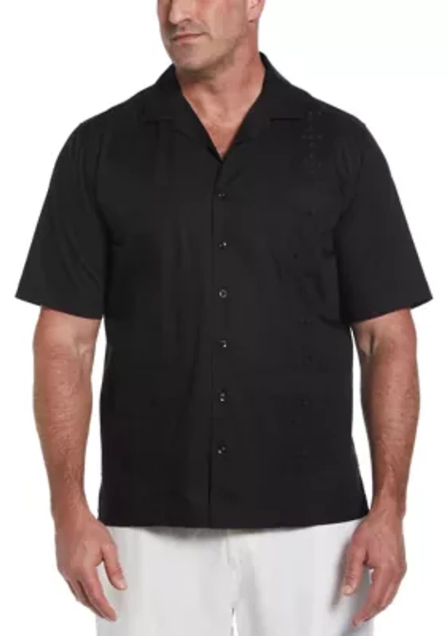 Cubavera Allover Embroidery Mens Short Sleeve Regular Fit Button-Down Shirt