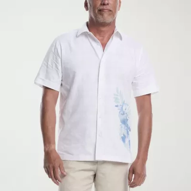 Cubavera Tropical Print Mens Short Sleeve Regular Fit Button-Down Shirt
