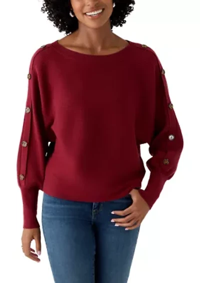 Women's Dolman Button Puff Sleeve Sweater