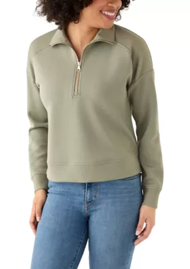 Women's Long Sleeve Quarter Zip Ribbed Top