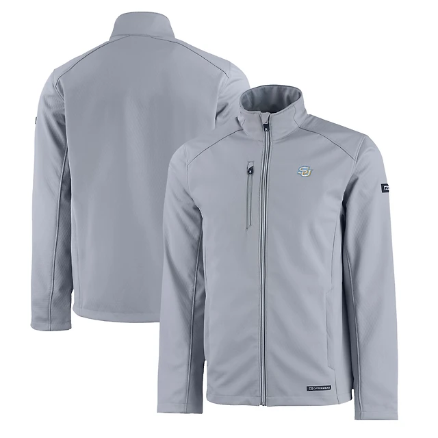 Men's Cutter & Buck Gray Southern University Jaguars Evoke Eco Softshell Recycled Full-Zip Jacket