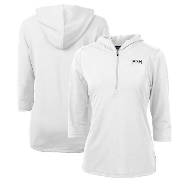 Women's Cutter & Buck Black South Carolina Gamecocks Vault DryTec Virtue Eco Pique Recycled 3/4-Sleeve Half-Zip Pullover Hoodie