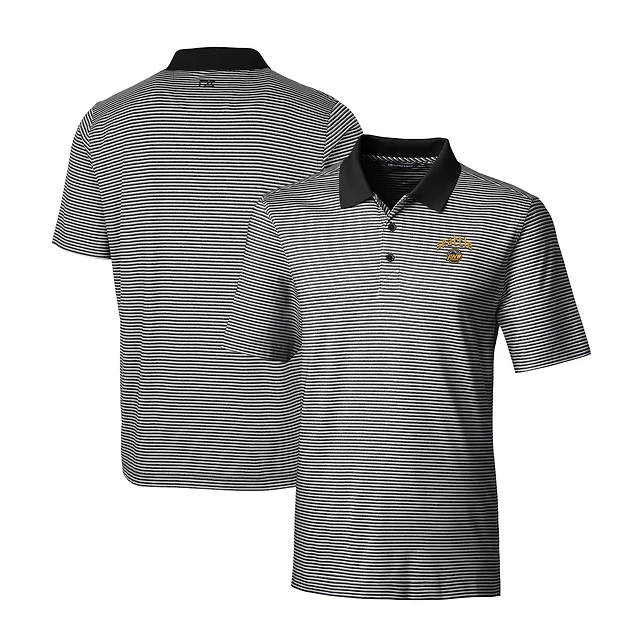 Men's Cutter & Buck Black Vanderbilt Commodores Vault Forge Pencil Stripe Stretch Polo