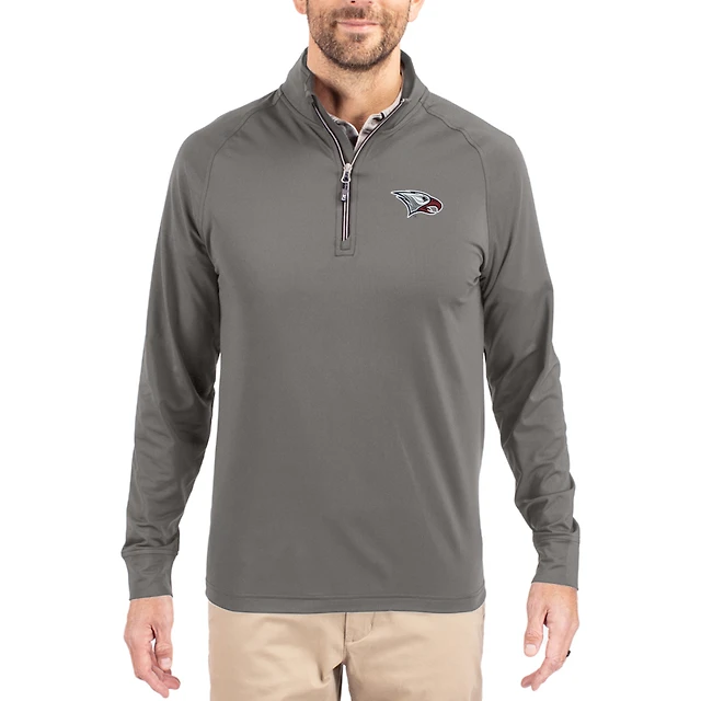 Men's Cutter & Buck Gray Southeastern Louisiana Lions Primary Logo Adapt Eco Knit Stretch Raglan Quarter-Zip Pullover
