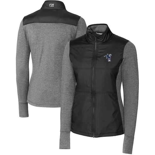 Women's Cutter & Buck Black Indianapolis Colts Throwback Logo Stealth Hybrid Quilted Full-Zip Windbreaker Jacket