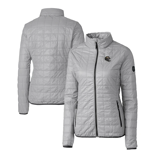 Women's Cutter & Buck Gray Philadelphia Eagles Gridiron Classics Logo Rainier PrimaLoft Eco Insulated Full-Zip Puffer Jacket