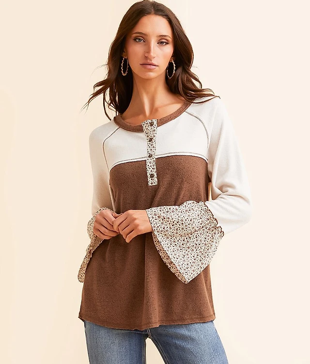 Pieced Floral Henley