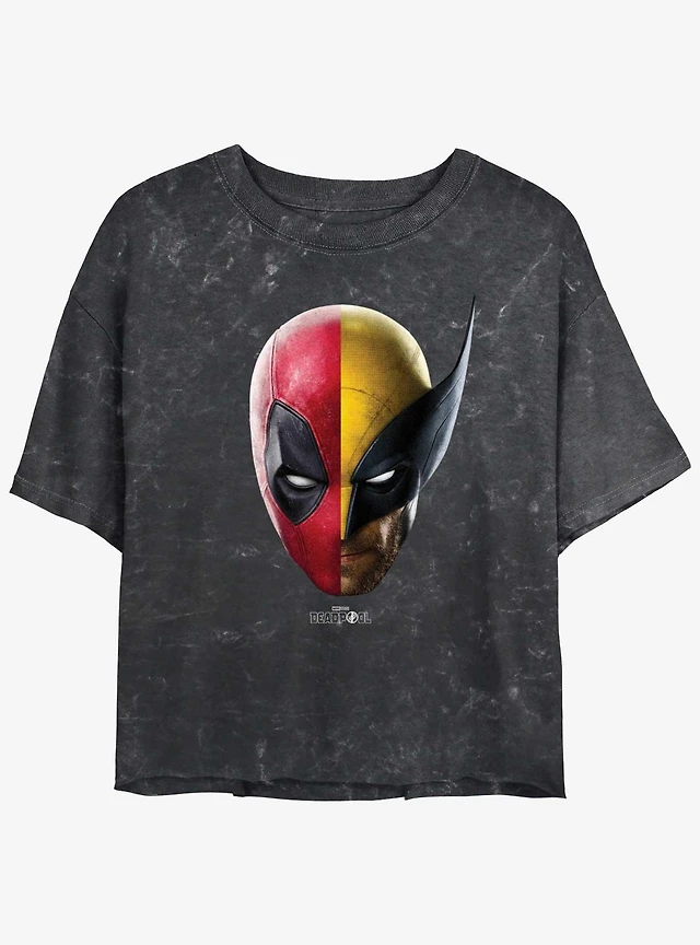 Marvel Deadpool & Wolverine Half Portrait Womens Mineral Wash Crop T-Shirt