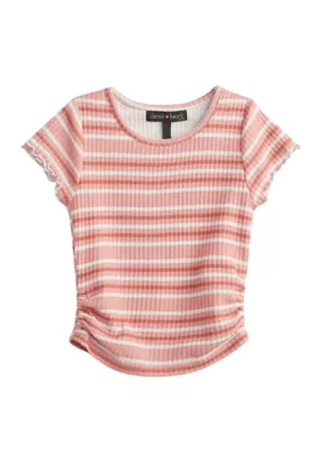 Girls 4-6x Short Sleeve Ribbed Front Seam Top