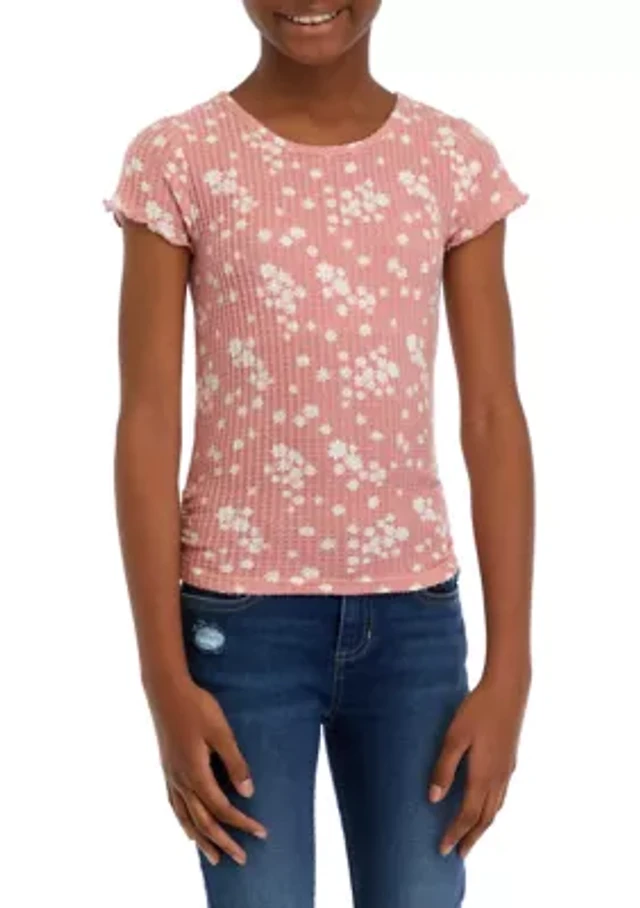 Girls 4-6x Floral Waffle Knit T-Shirt