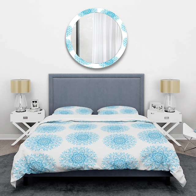 Designart 'Circular Geometric In Blue' Mid-Century Duvet Cover Set