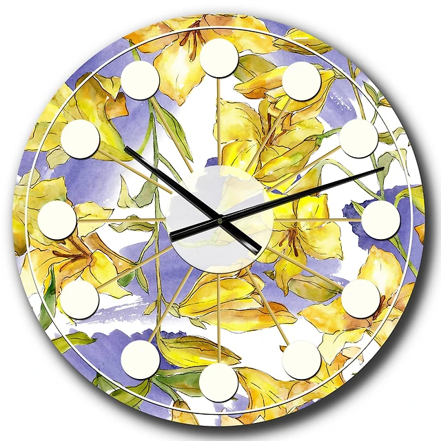 Designart 'Retro Handdrawn Lilies Mid-Century Modern Wall Clock