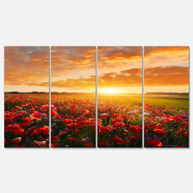 Designart - Beautiful Poppy Field at Sunset