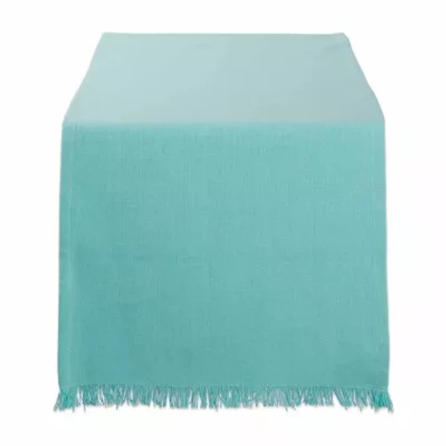 Design Imports Aqua Solid Heavyweight Fringed Table Runner