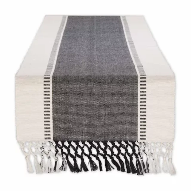 Design Imports Black/White Dobby Stripe Table Runner