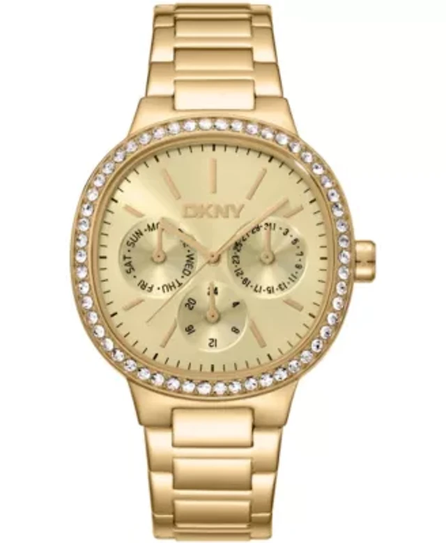 DKNY Women's Silver Dial Crystal Bezel Two-Tone Gold Stainless Steel Bracelet Multifunctional Watch 36mm 30M
