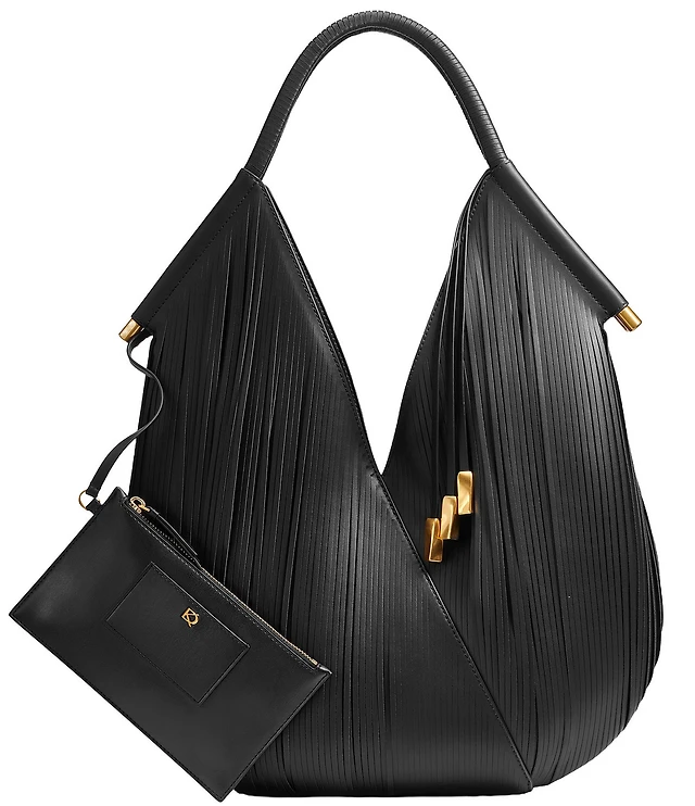 Donna Karan Baldwin Large Laser Cut Fringe Leather Shoulder Bag