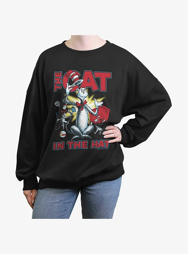 Dr. Seuss The Cat Hat Cattitude Womens Oversized Sweatshirt