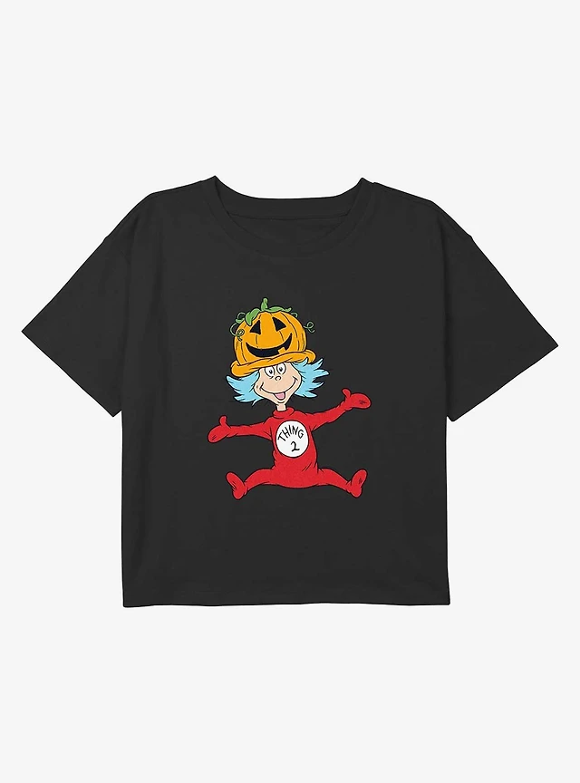 Dr Sesuss Pumpkin Hat Thing 2 Youth Girls Boxy Crop T-Shirt