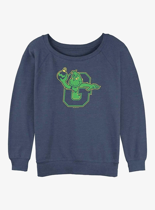 Dr Seuss Collegiate Grinch Womens Slouchy Sweatshirt