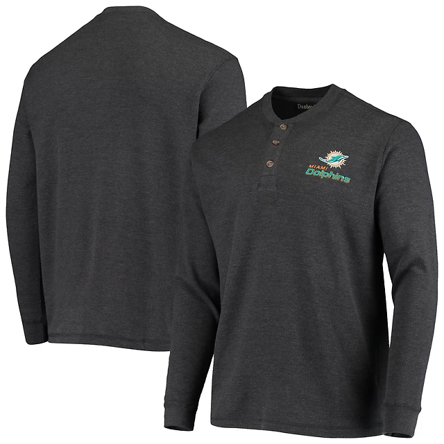 Men's Dunbrooke Charcoal Miami Dolphins Logo Maverick Thermal Henley Long Sleeve T-Shirt