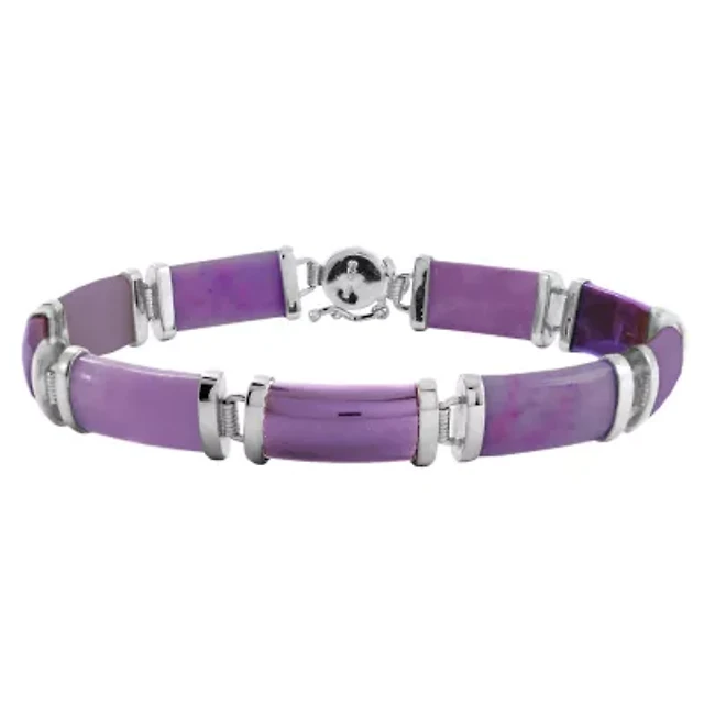 Genuine Purple Jade Link Station Bracelet in Rhodium Plated Sterling Silver, 7.5"