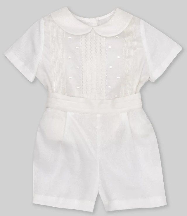 Edgehill Collection Little Boys Peter Pan Collar Short Sleeve Heirloom Christening Top & Shorts Set